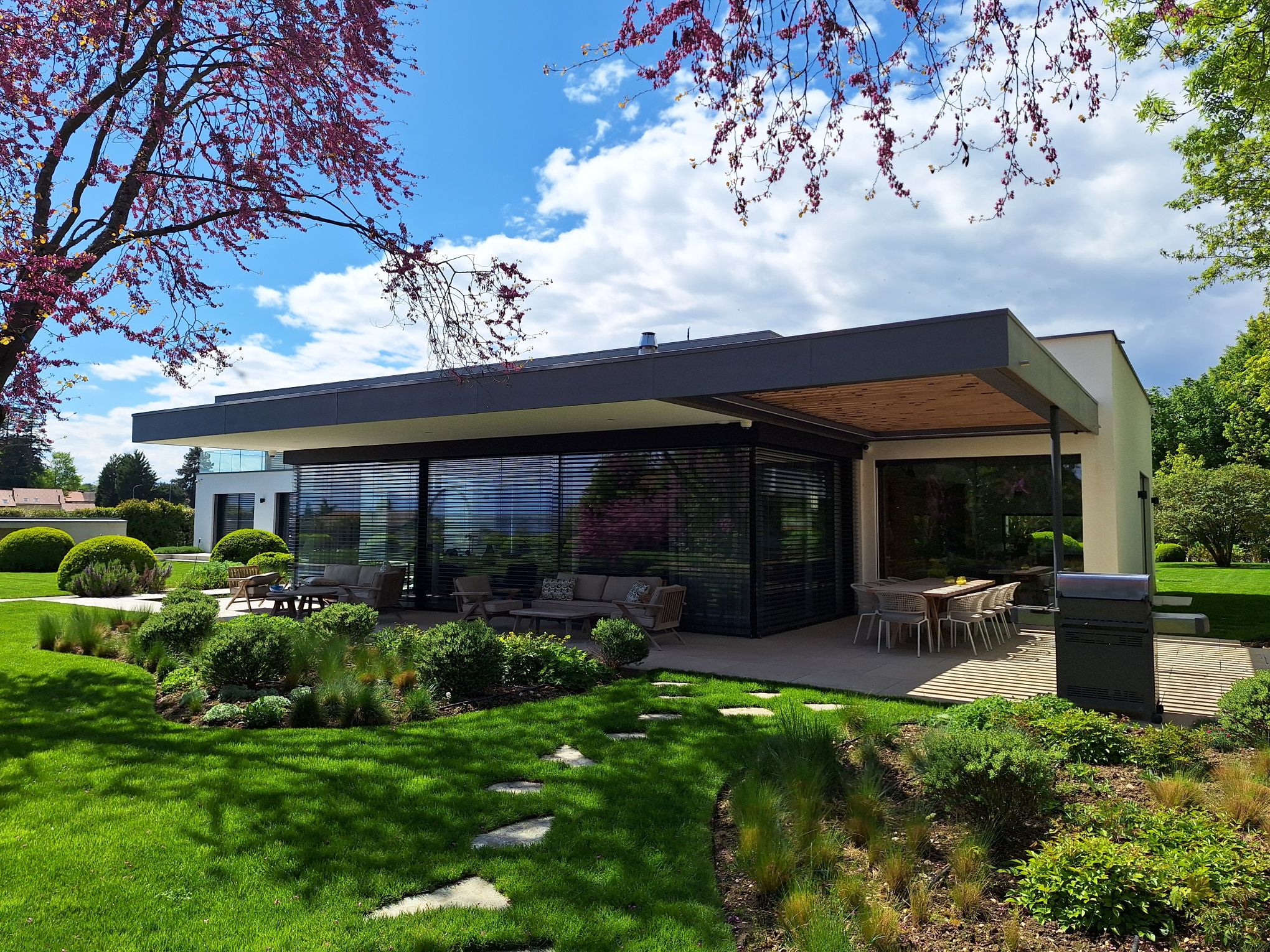 Founex 2011 : Transformation complète et agrandissement d’une maison des années 60. L’extension a été visuellement intégrée avec l’édifice d’origine. Les Aménagements extérieurs ancrent la maison dans son environnement naturel.