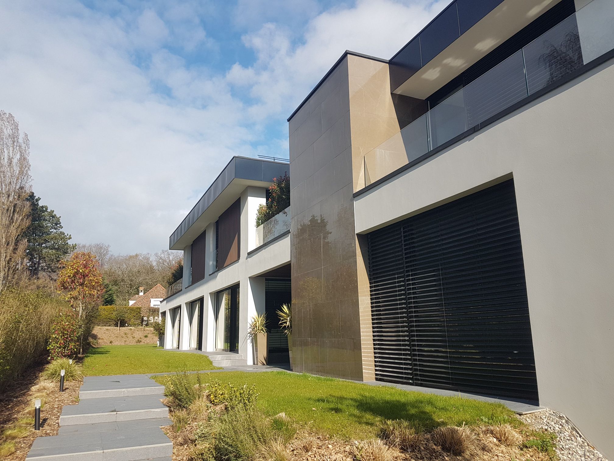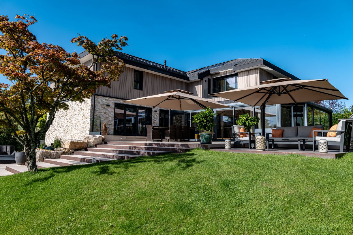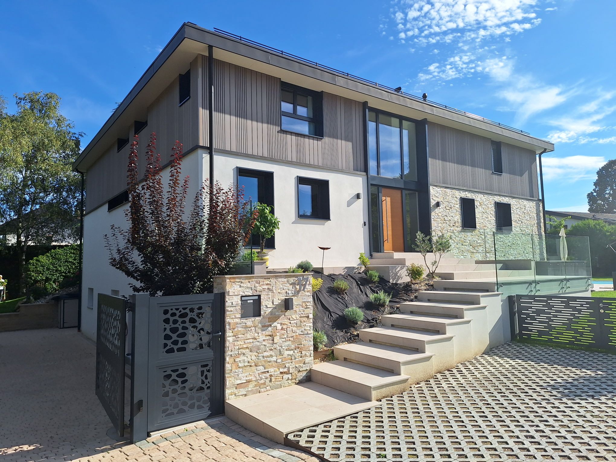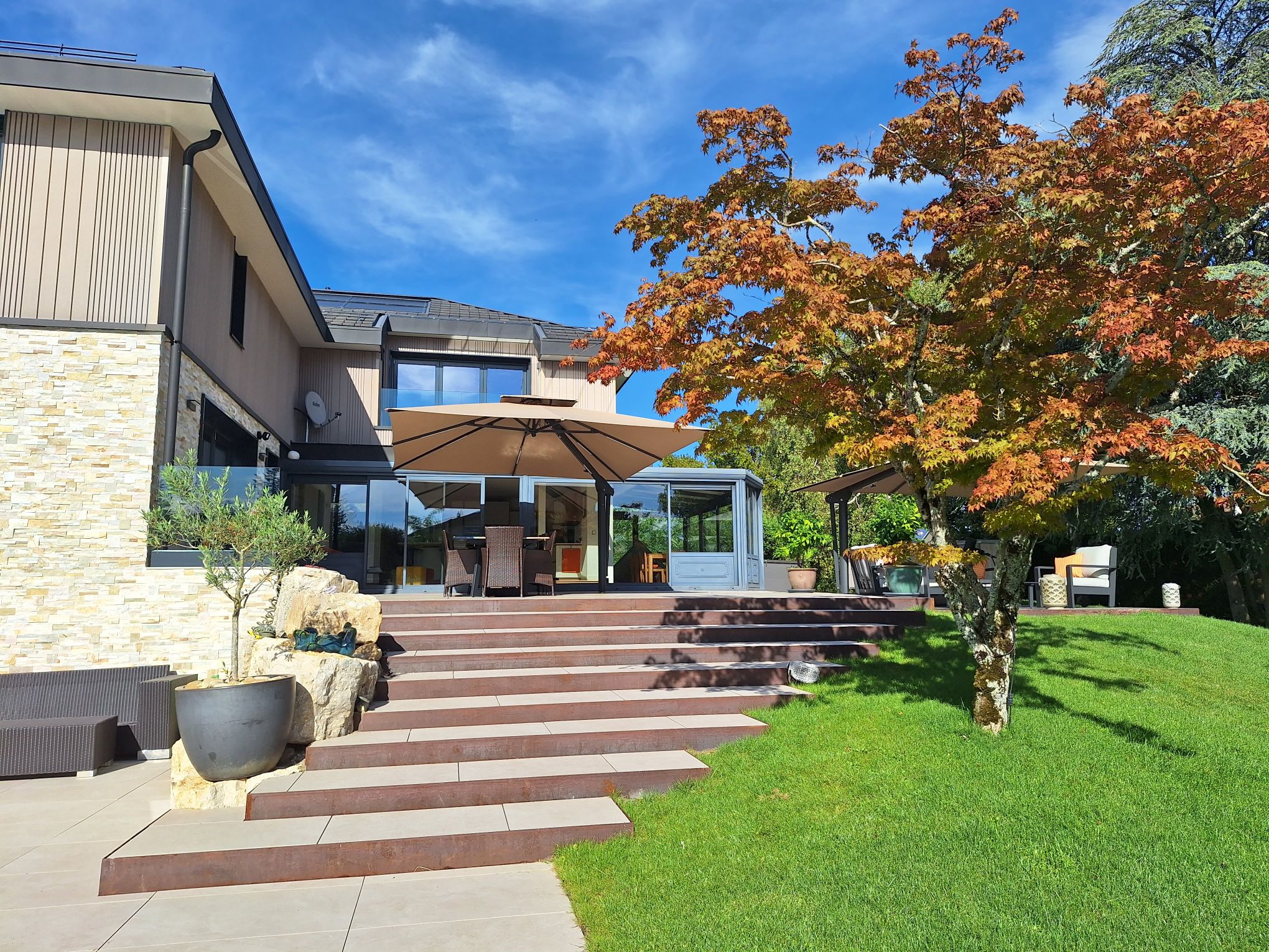 Collonges-Bellerive 2016 : Transformation complète et extension d’une villa des années 80. La villa a été agrandie afin de donner une impression de continuité dans le temps.