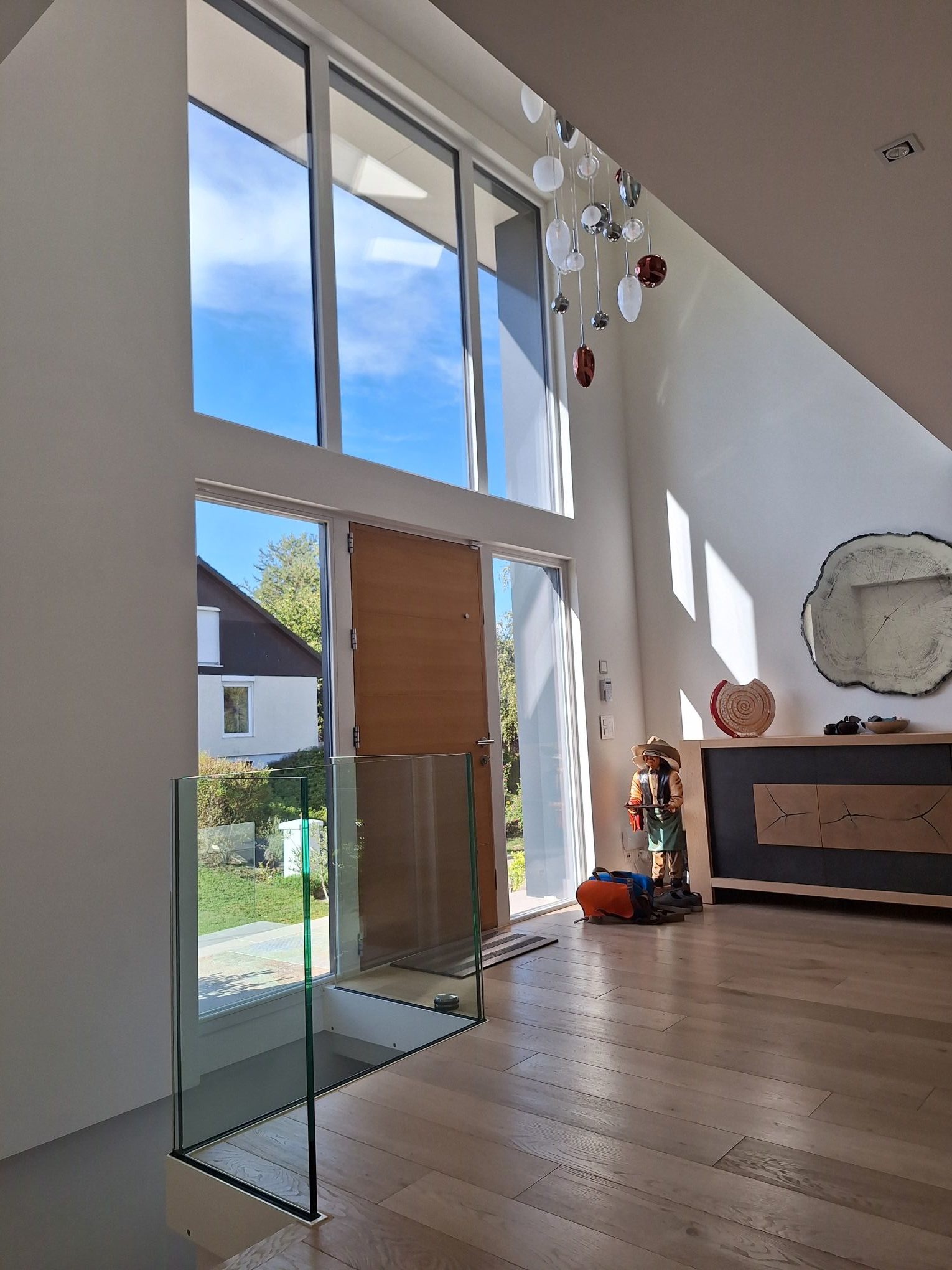 Nyon 2002 : Transformation intérieure d’une maison villageoise et création d’une loggia. Tout en apportant un gain en lumière naturel dans le séjour et en projetant celui-ci vers l’extérieur, la loggia donne une certaine intimité à ses occupants par rapport au passage piéton en dessous.