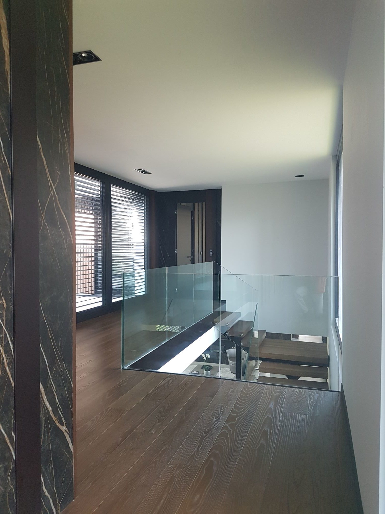 Corsier 2010 :Transformation complète d’une maison villageoise du 17ème siècle. Pour amener de la lumière naturelle à travers l’intérieur de l’édifice, un escalier en verre et métal, surmonté d’une verrière dans la toiture, a été inséré dans la partie la plus sombre de la maison. La façade, la toiture et les menuiseries extérieures ont été réalisées dans le respect des matériaux et des détails traditionnels. A l’intérieur un mur en pierre apparent mis à nu durant la démolition a été récupéré et mis en valeur.