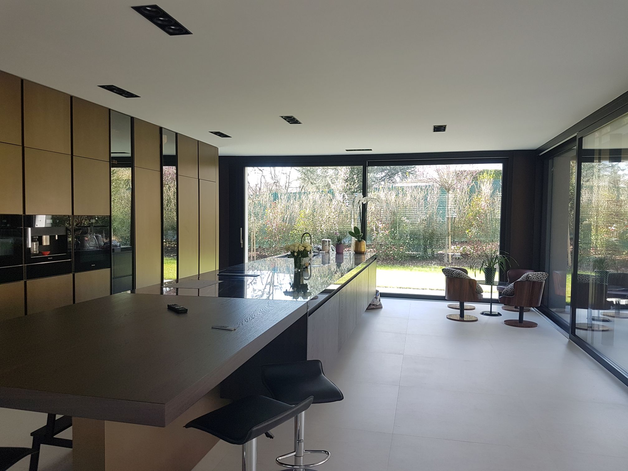 Tannay-Joran 2018 : Construction d’une maison adossée à une villa existante. La maison est partiellement construite sur le garage semi-enterré existant en intégrant celui-ci spatialement dans le nouveau volume, ce qui permet de développer l’intérieur sur deux niveaux de planchers distincts et de créer une dynamique spatiale. L’intérieur est conçu comme un « loft » avec de grands espaces ouverts et de larges baies vitrées.